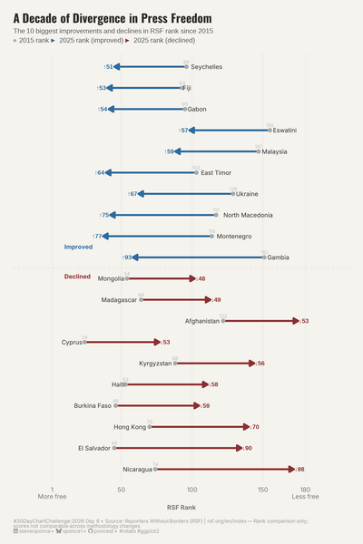 Welcome to my data visualization gallery. Here you’ll find a collection of visualizations created using R, primarily focusing on #TidyTuesday, #30DayChartChallenge, #SWDchallenege, and #MakeoverMonday challenges and personal projects.